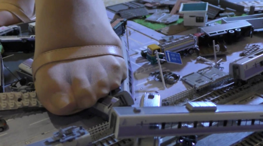アイドル級美人のサンダルでジオラマクラッシュ